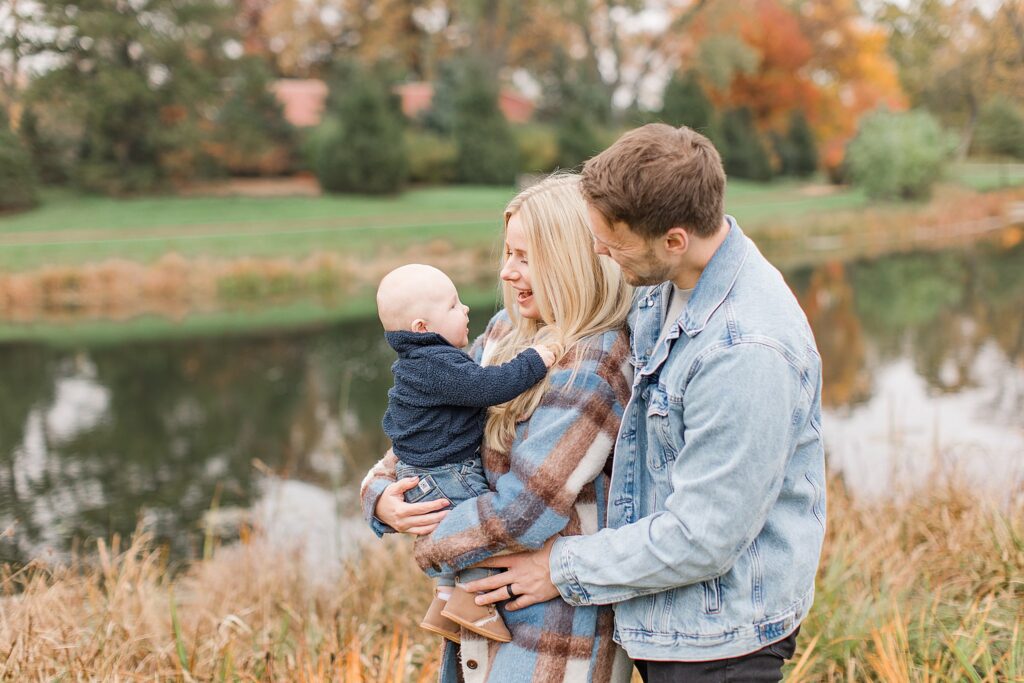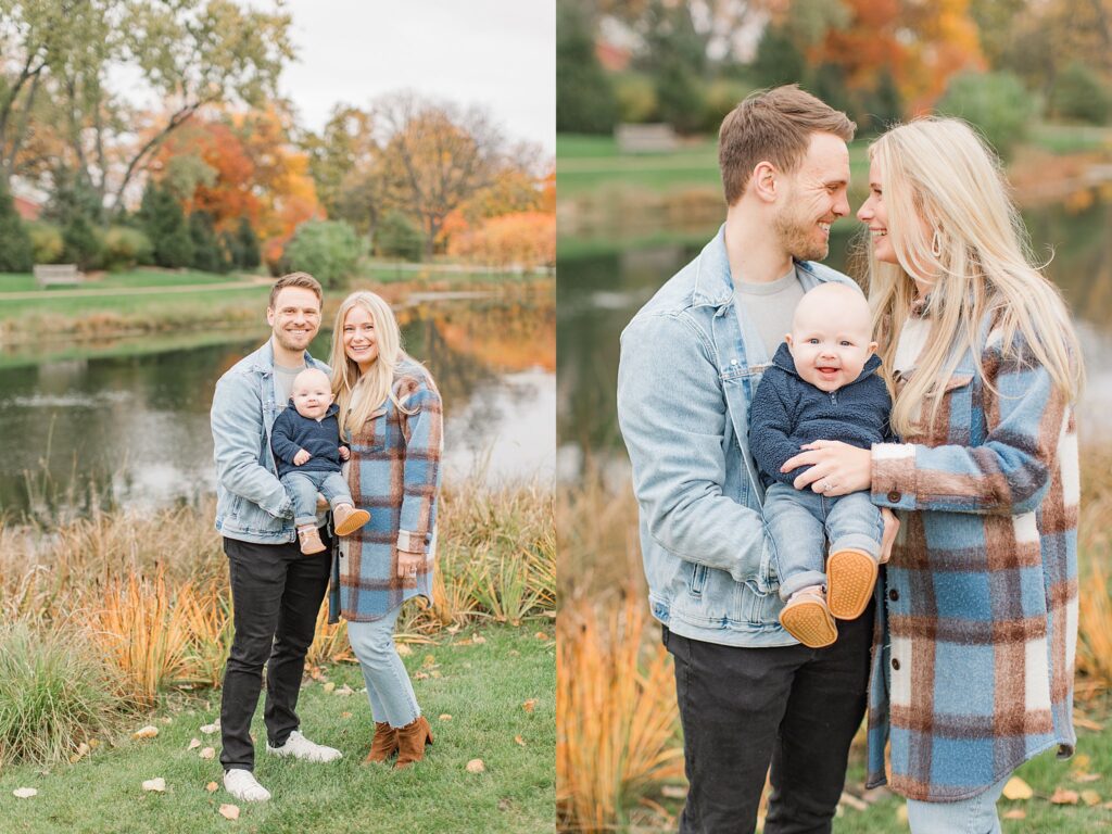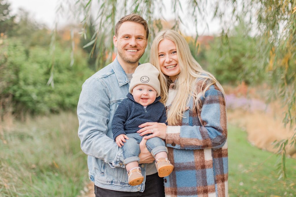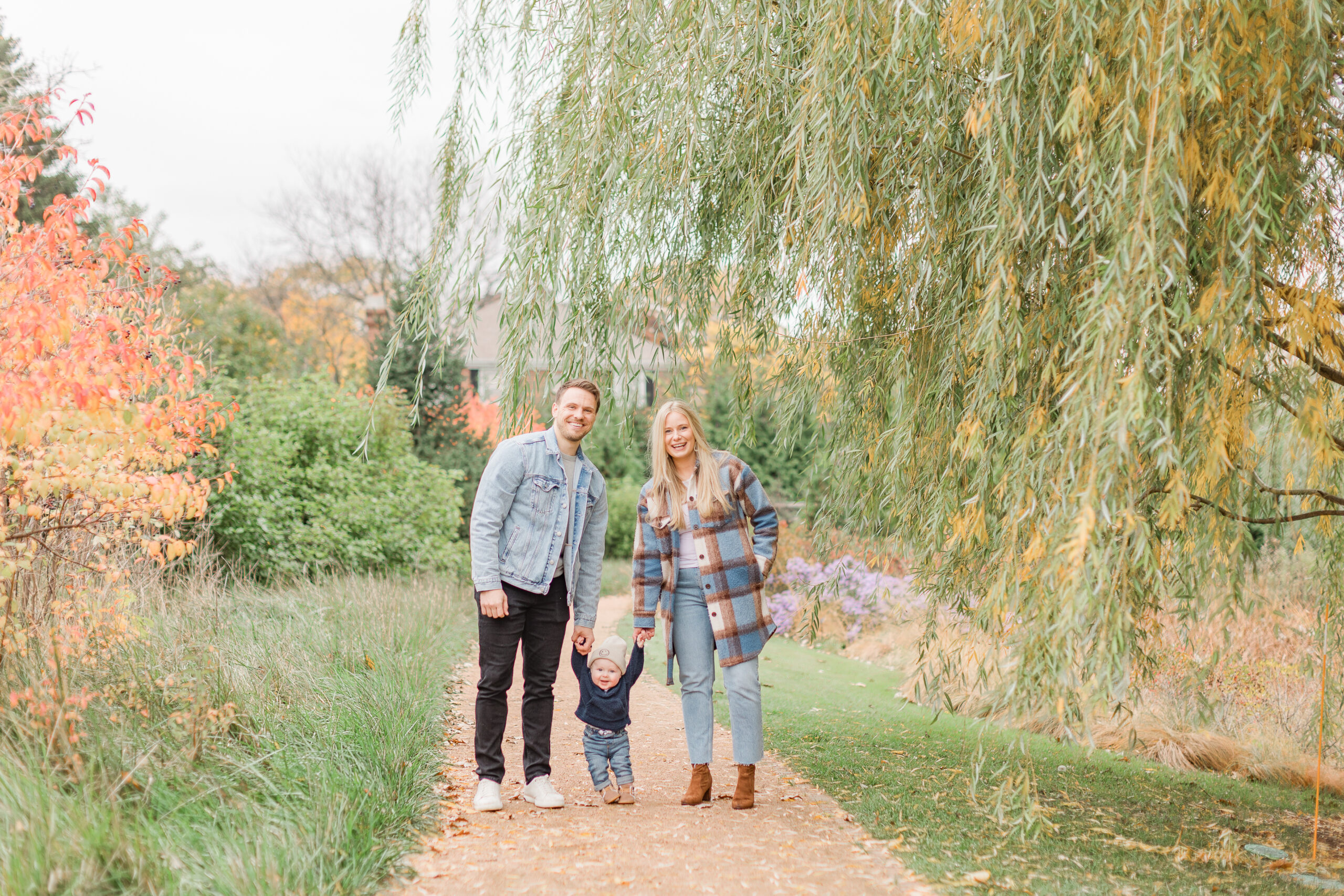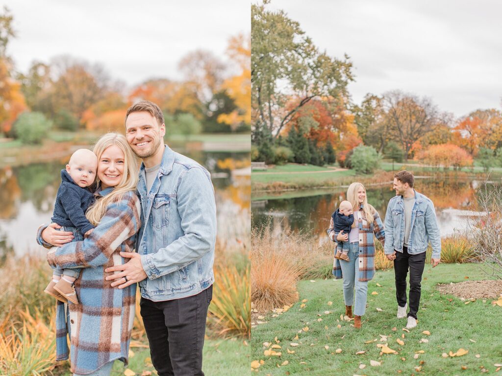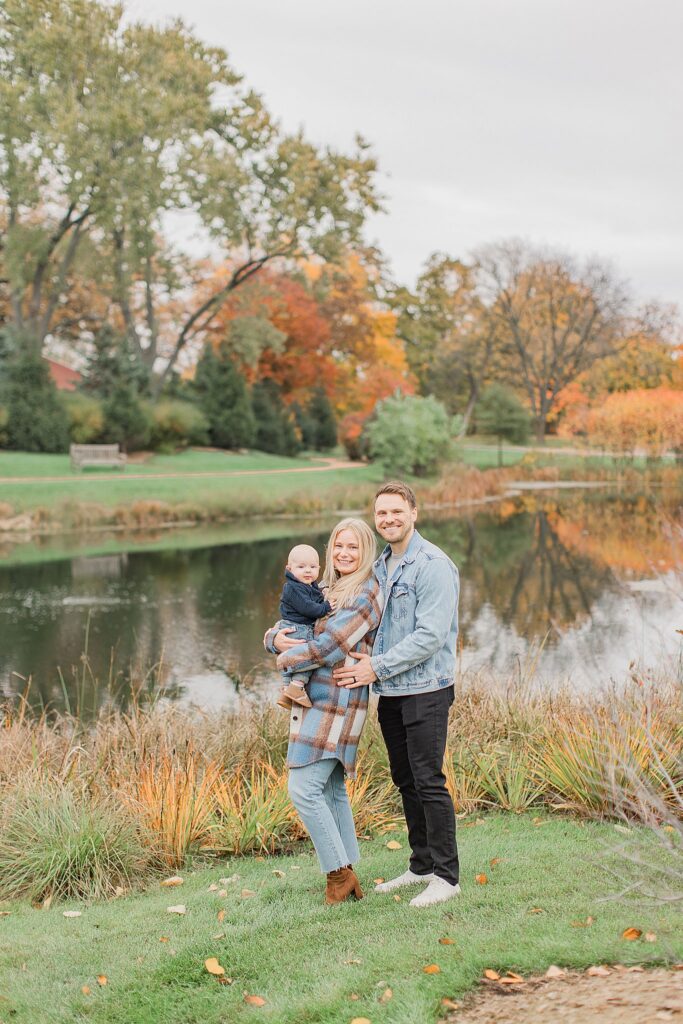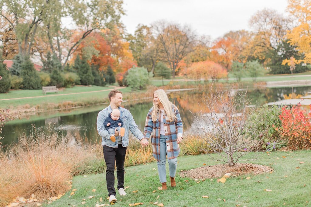 Years ago, I photographed Steve and Ashley’s wedding, not knowing then just how much our paths would continue to cross. Fast forward to last fall… and now I get to capture their family of three—with their sweet baby boy CJ in their arms, tucked into the golden hues of Cantigny Park.
