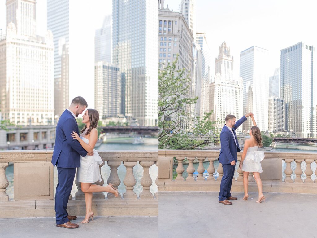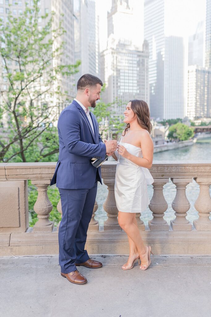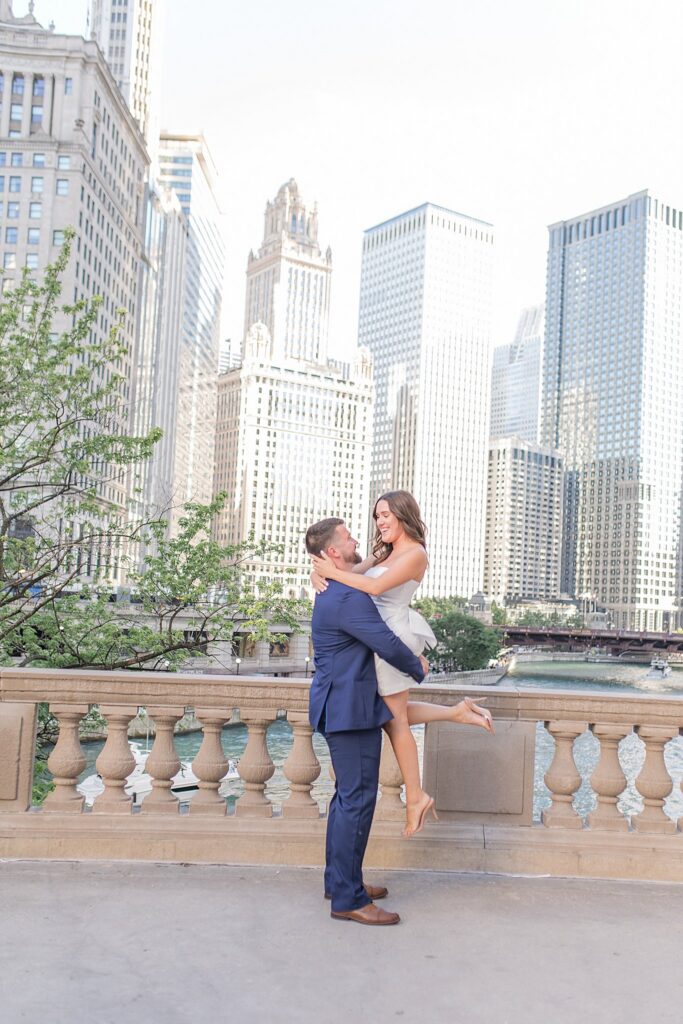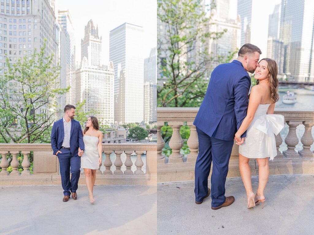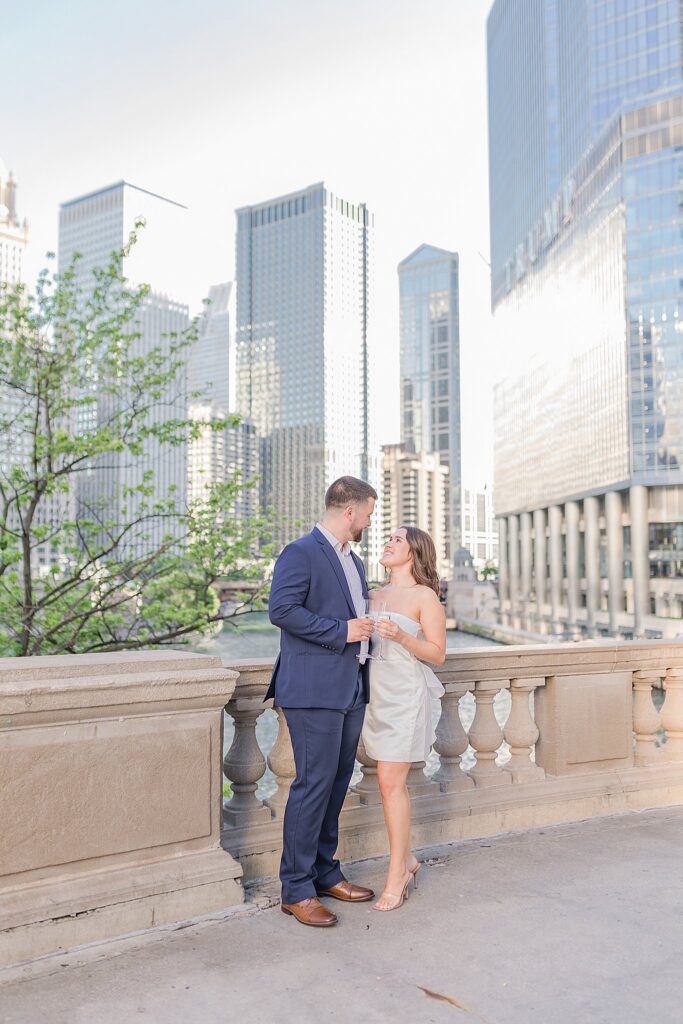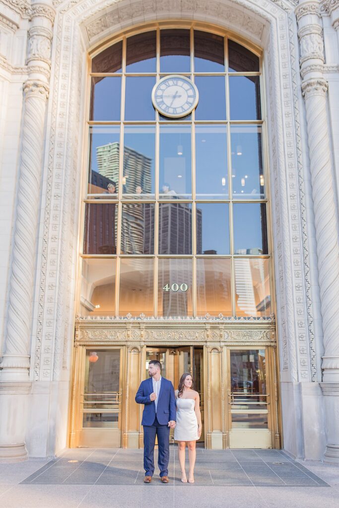 The Wrigley Building gave us that classic Chicago elegance—the soft glow of the city, the architecture towering around us, and just enough buzz in the background to make it feel alive without overwhelming their connection. It was the perfect place to start, especially for a couple who brings so much energy and joy into every space they step into.