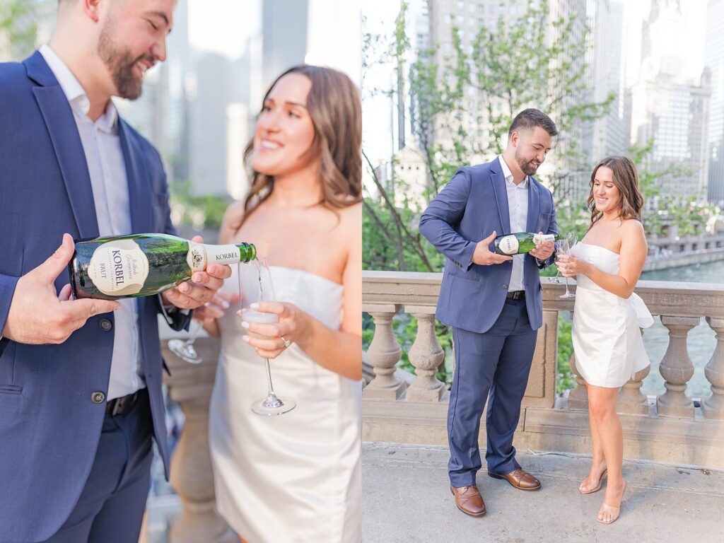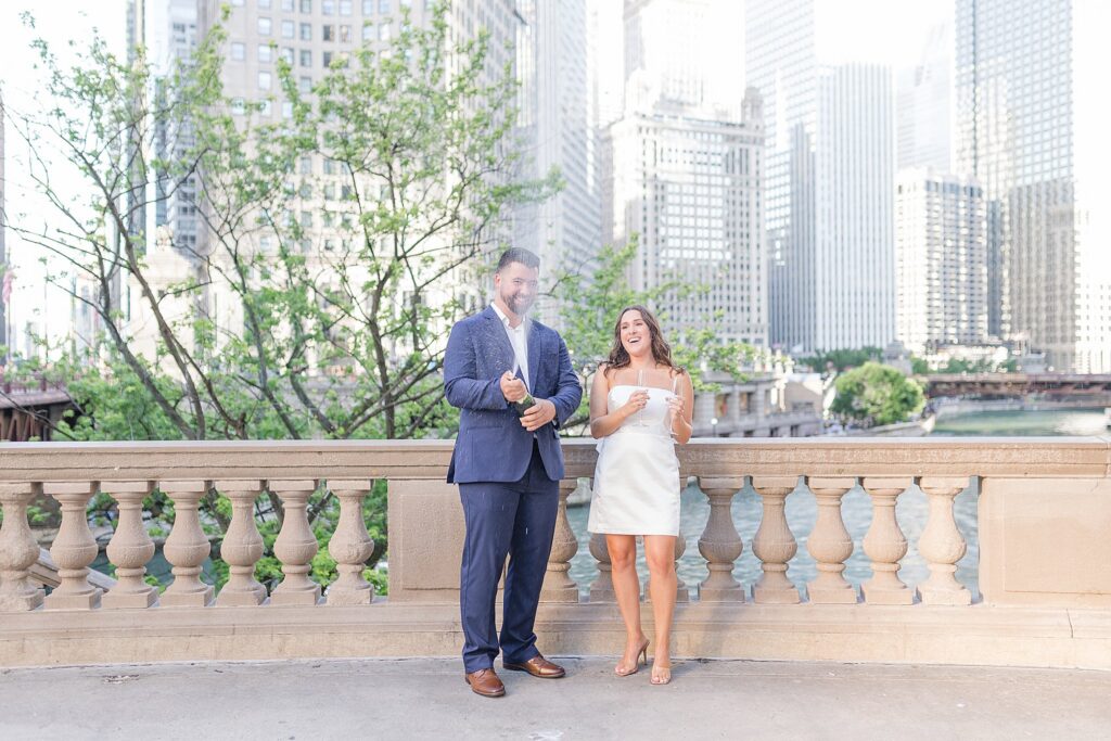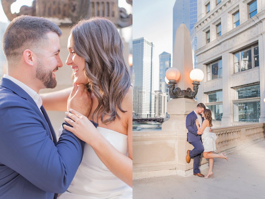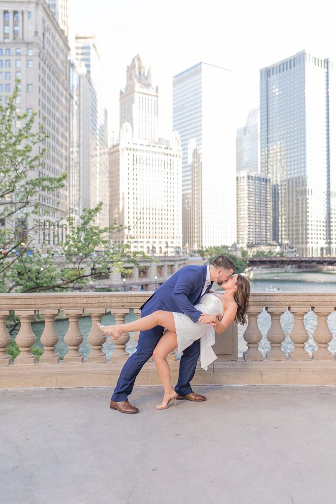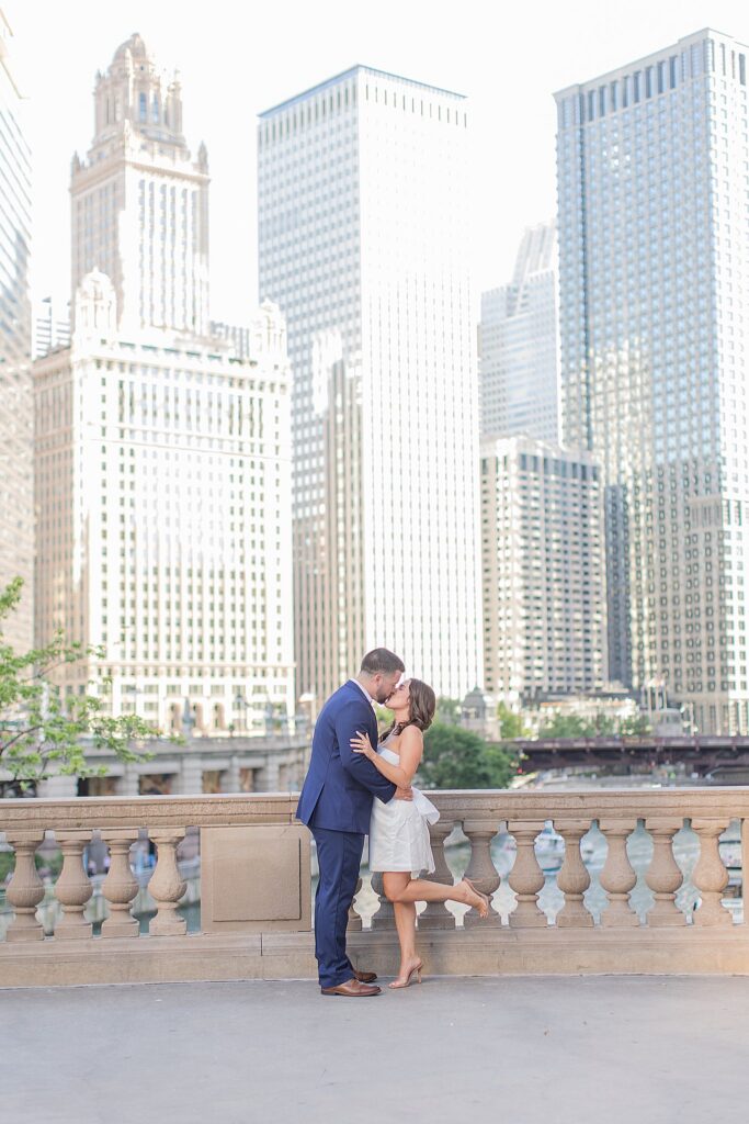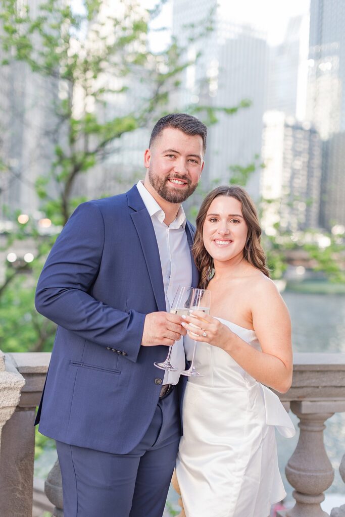 The Wrigley Building gave us that classic Chicago elegance—the soft glow of the city, the architecture towering around us, and just enough buzz in the background to make it feel alive without overwhelming their connection. It was the perfect place to start, especially for a couple who brings so much energy and joy into every space they step into.